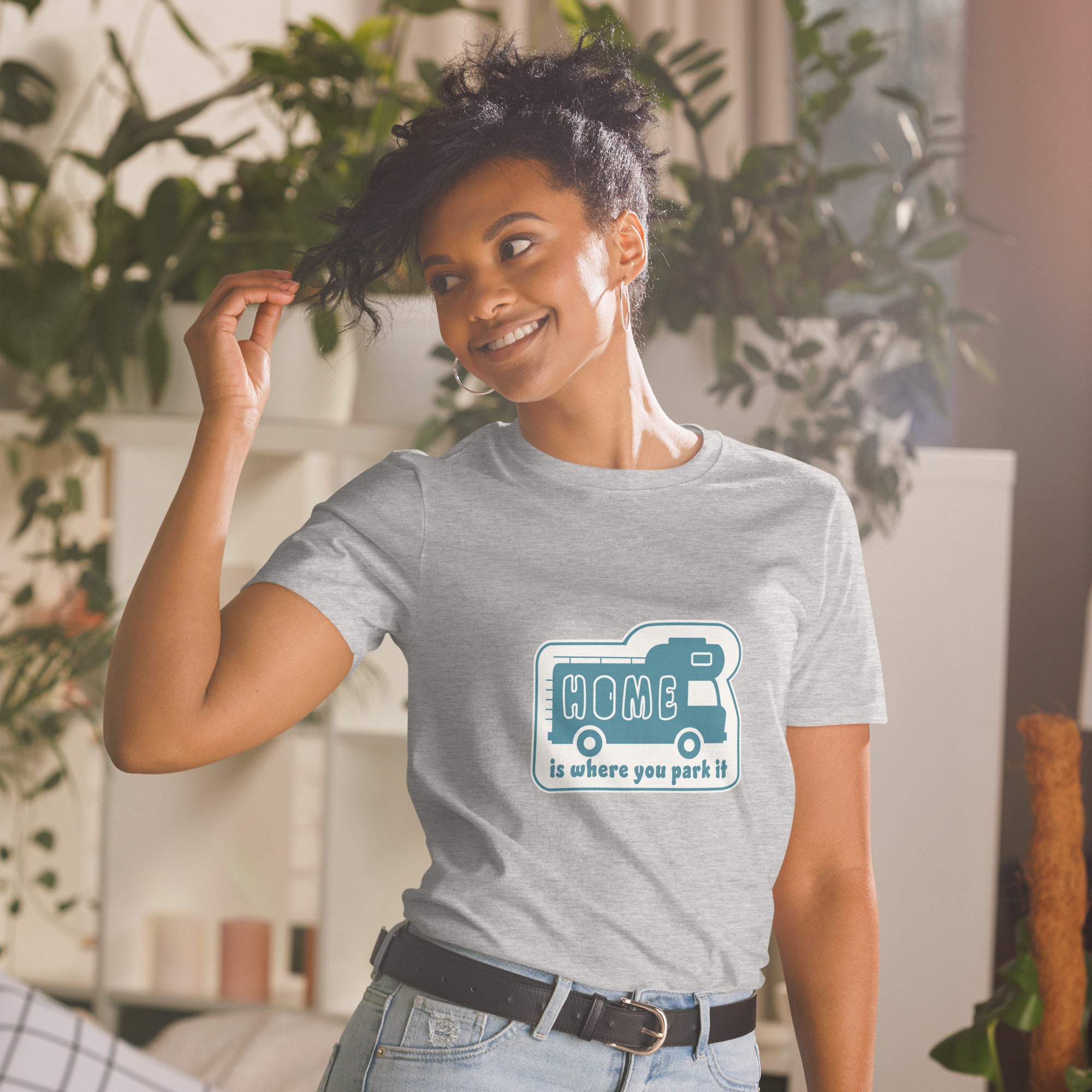 Softstyle Cotton T-Shirt Blue Camper Van Home is where you park it