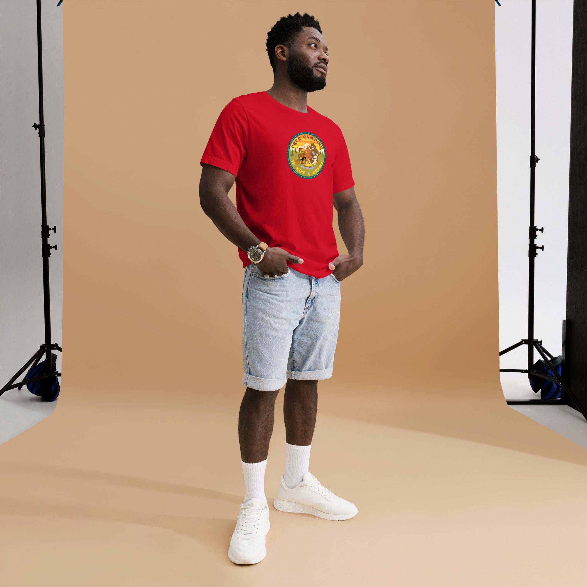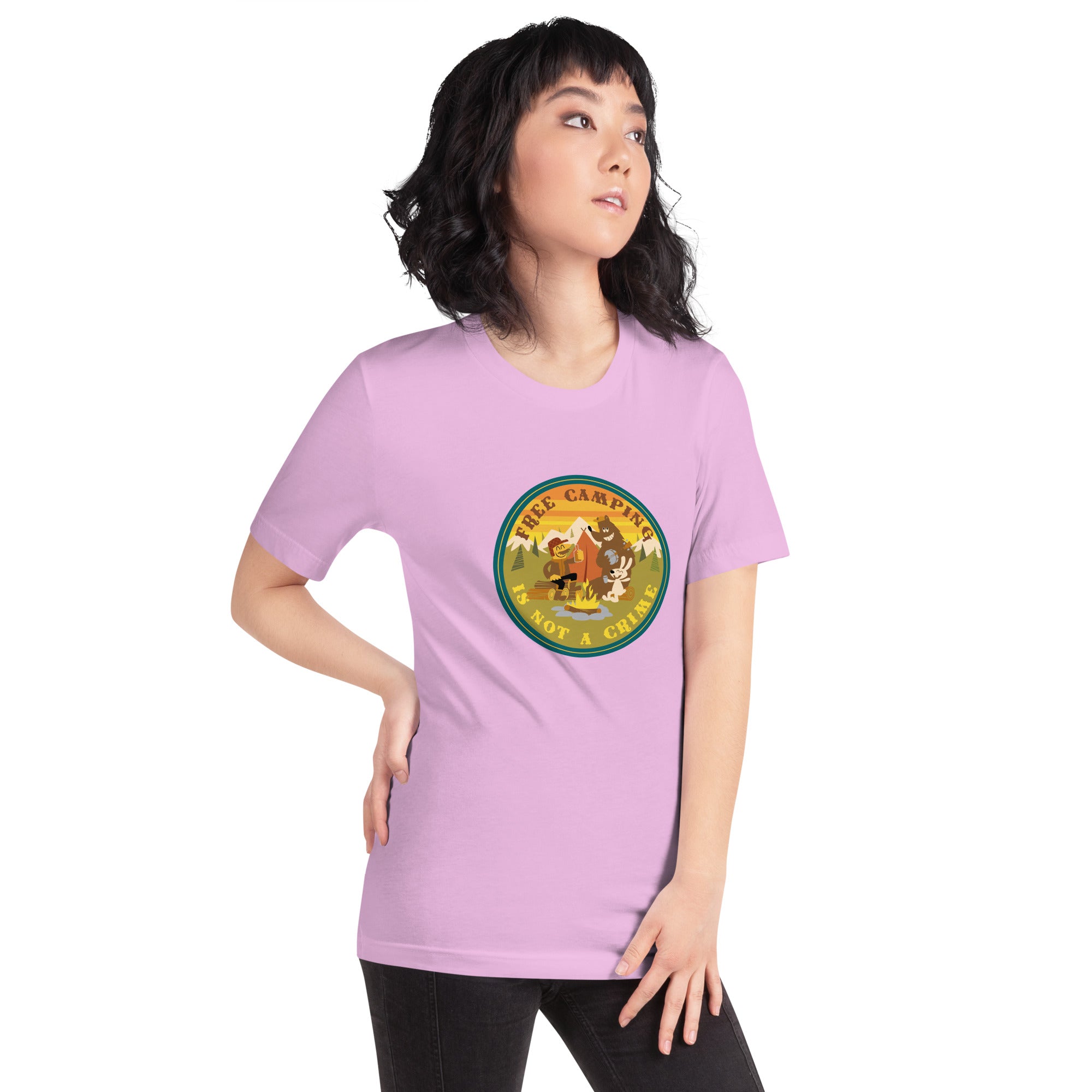 Unisex cotton t-shirt Free Camping is not a Crime on bright colors