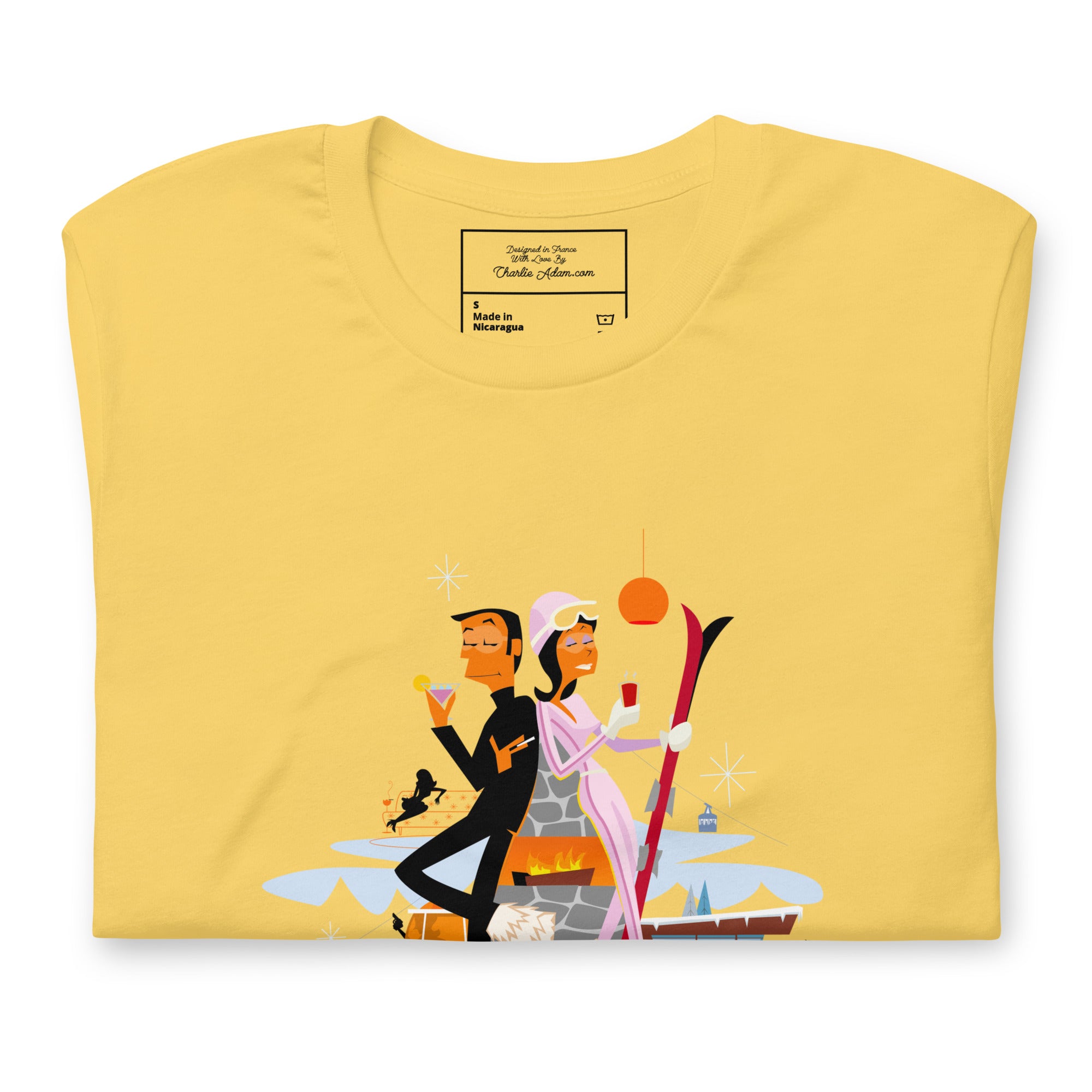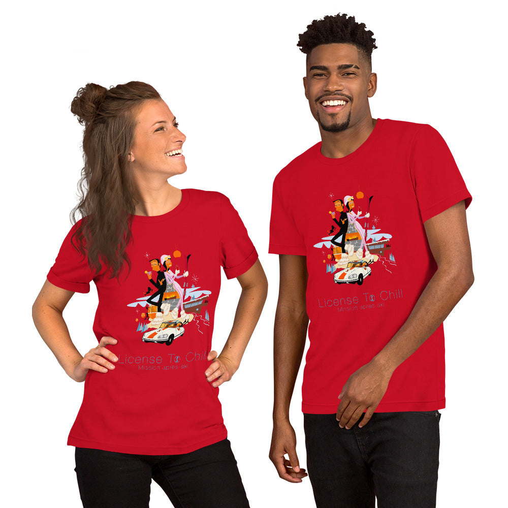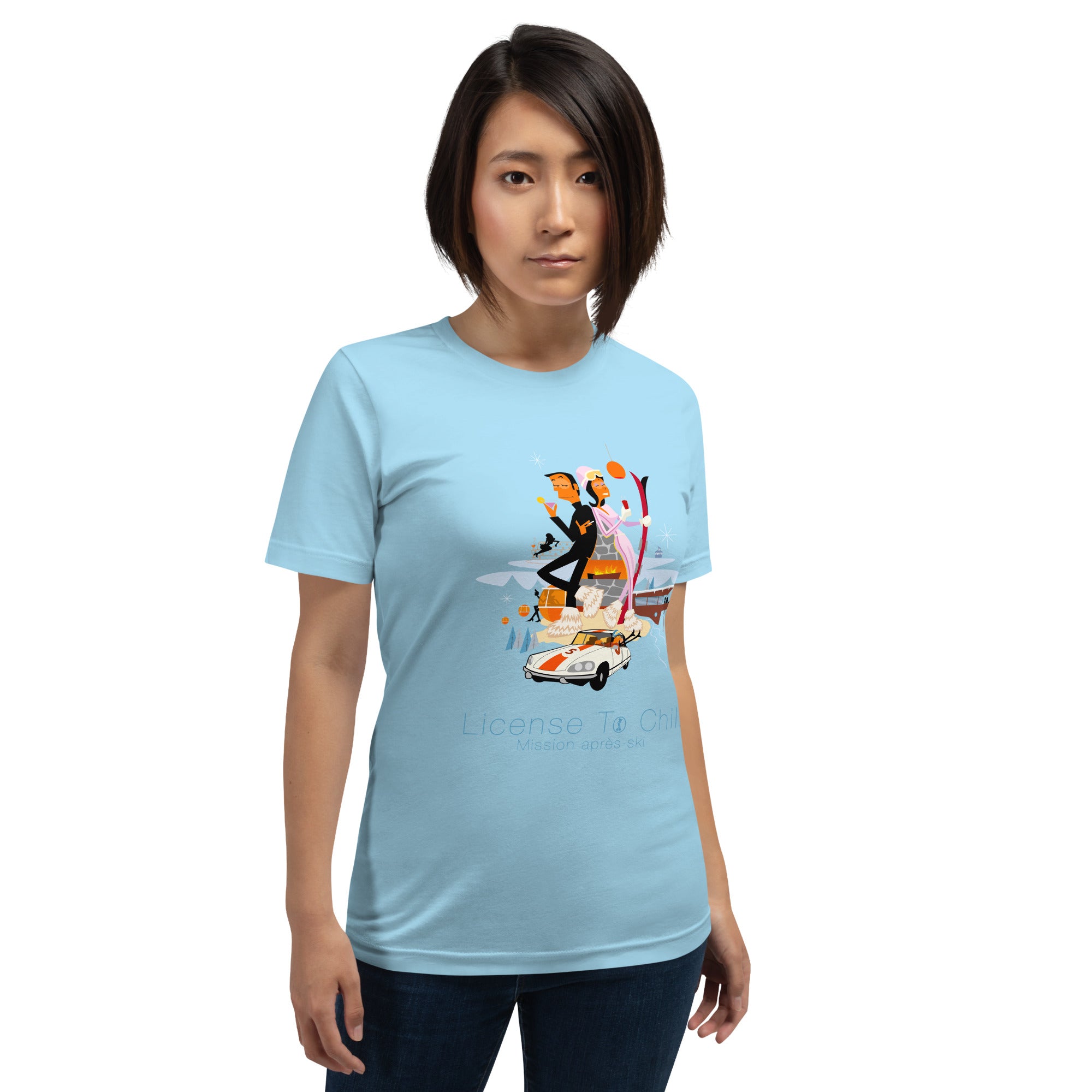 Unisex cotton t-shirt License to Chill Mission Après-Ski on bright colors