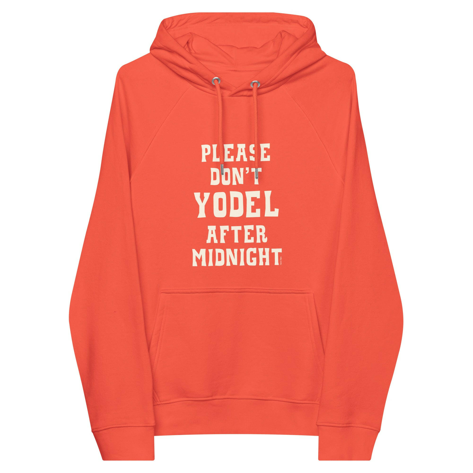 Unisex eco raglan hoodie Don't Yodel After Midnight on dark colors