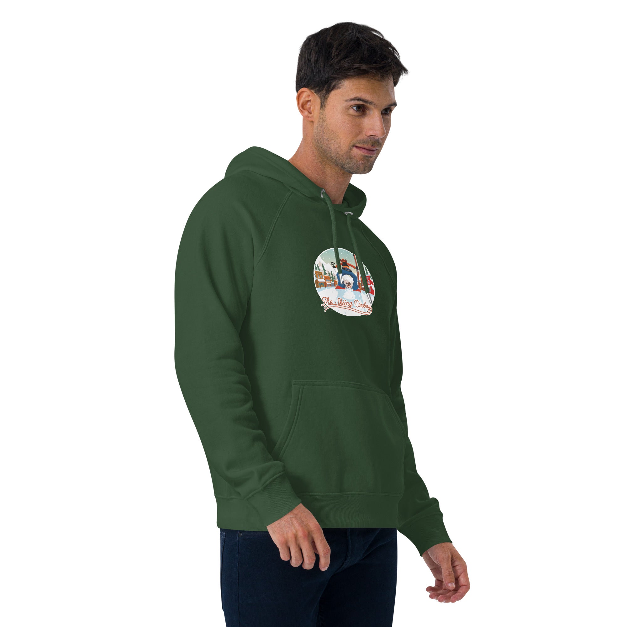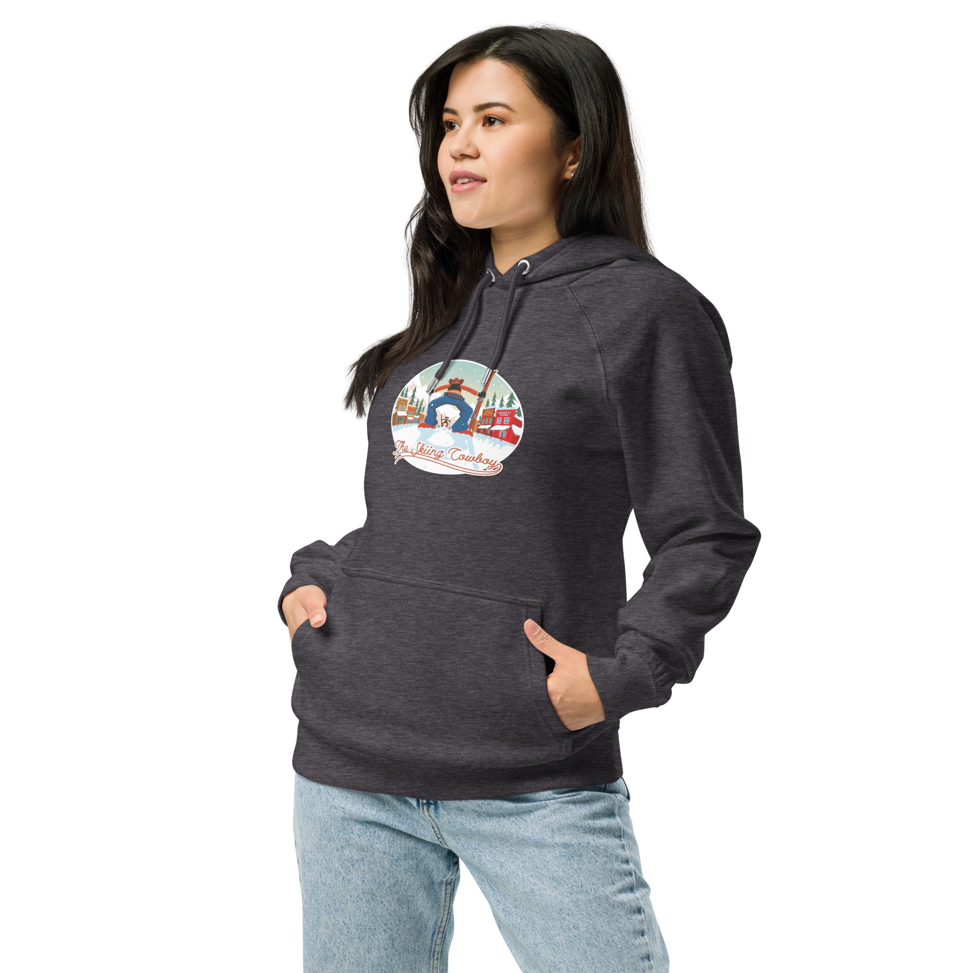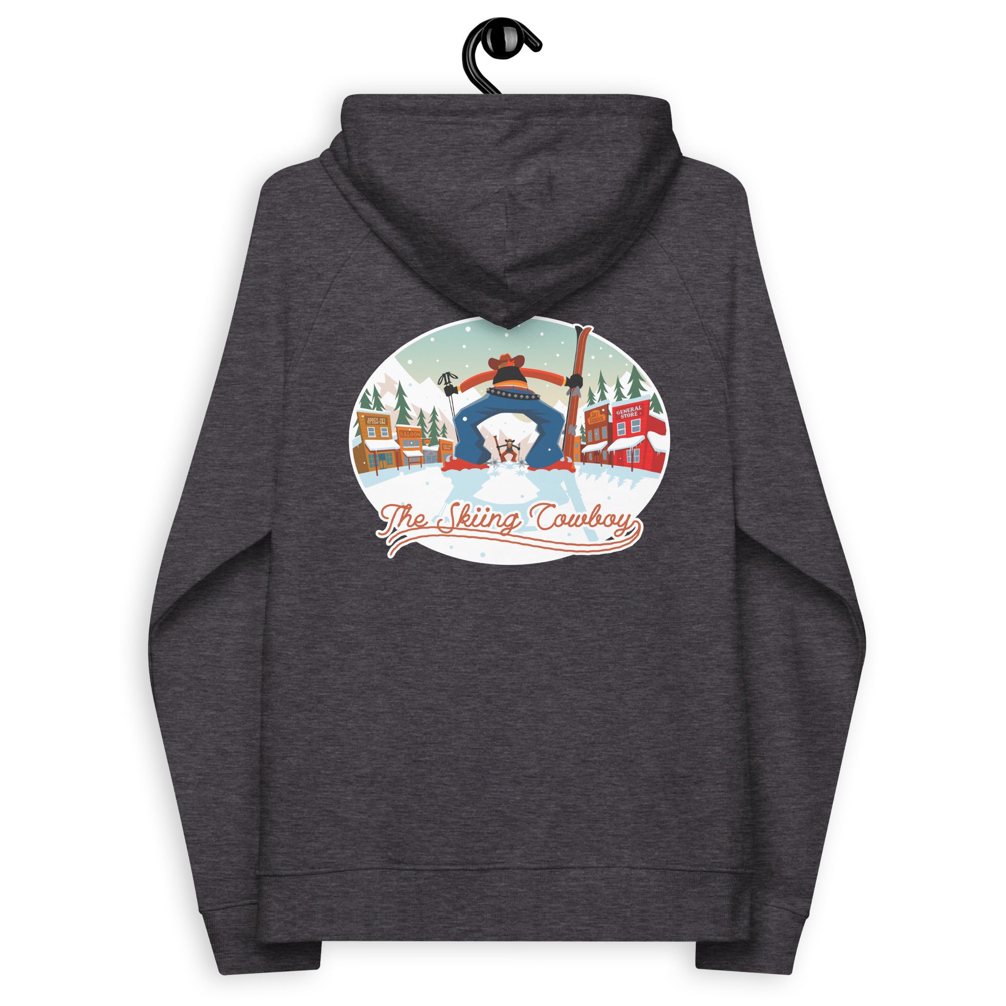 Unisex eco raglan hoodie Skiing Duel (front & back)