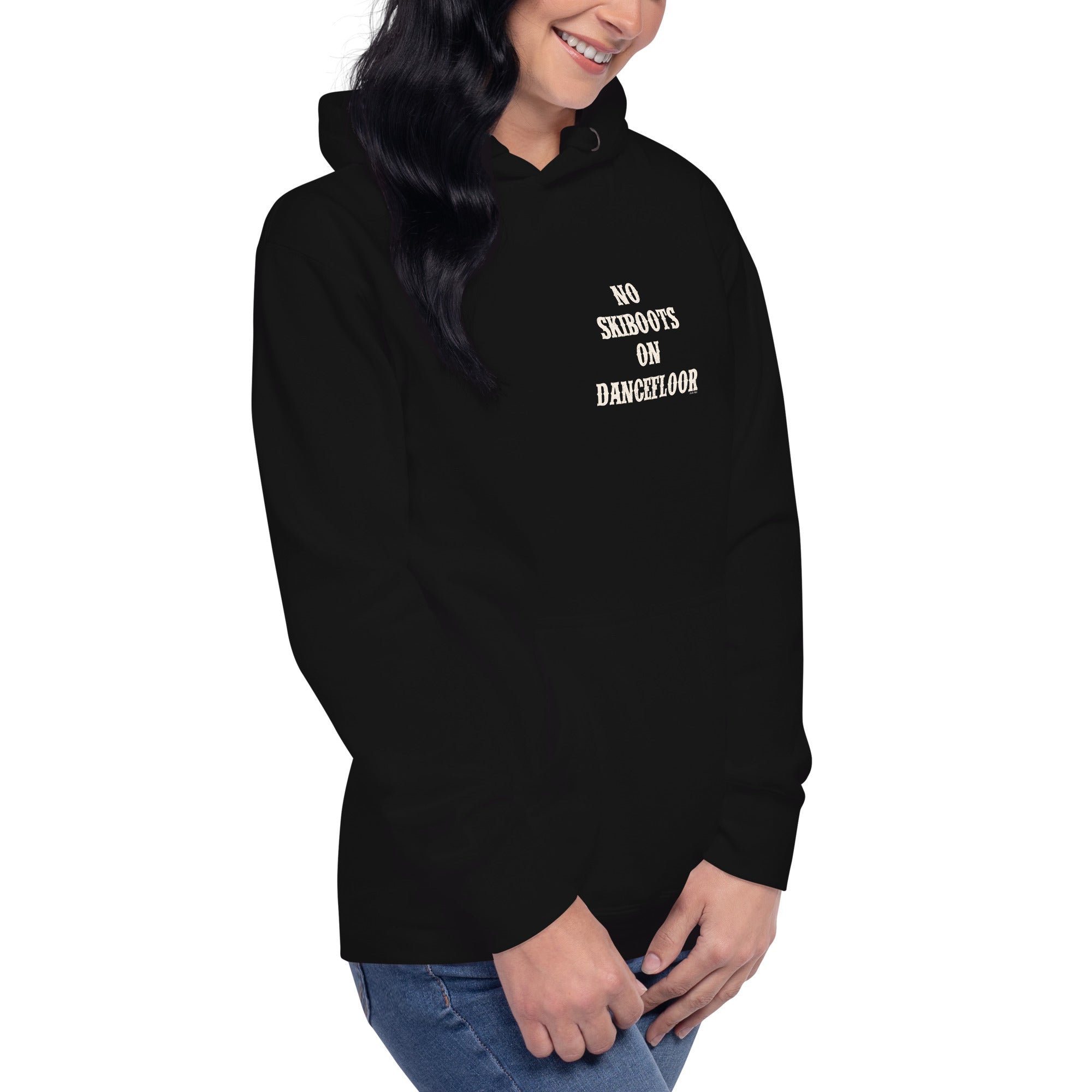 Unisex Cotton Hoodie No Skiboots on Dancefloor on dark colors