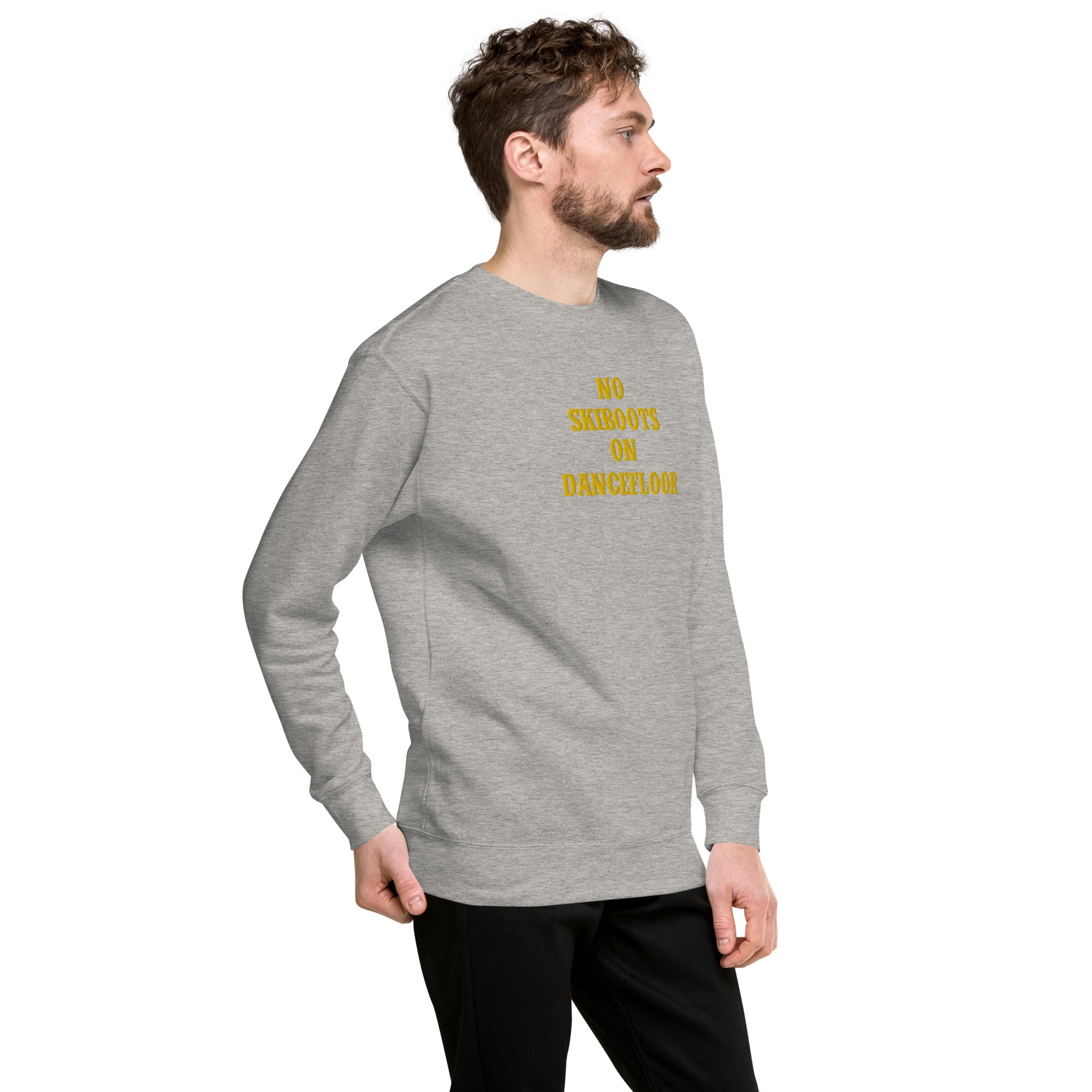 Unisex Premium Sweatshirt No Skiboots on Dancefloor large embroidered pattern