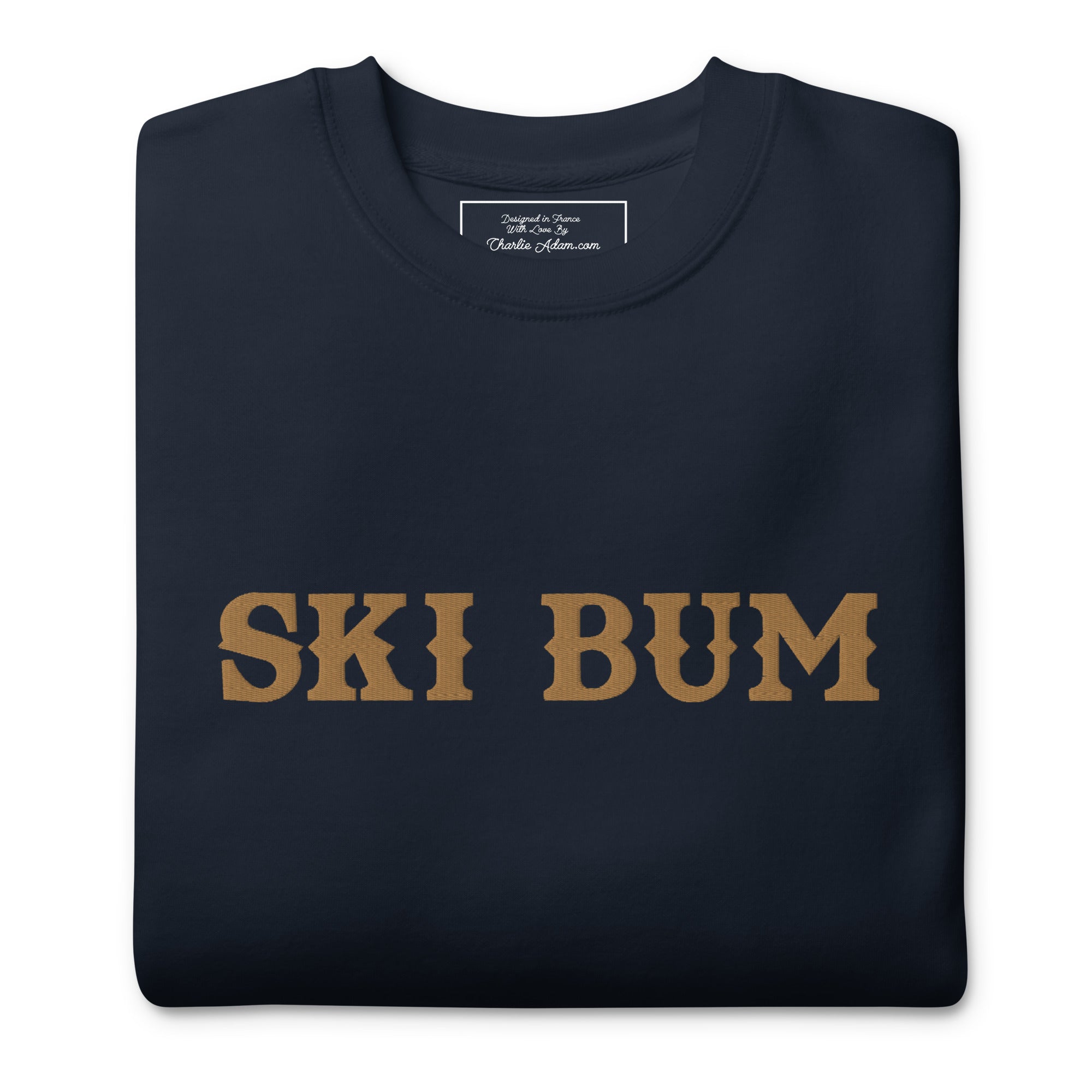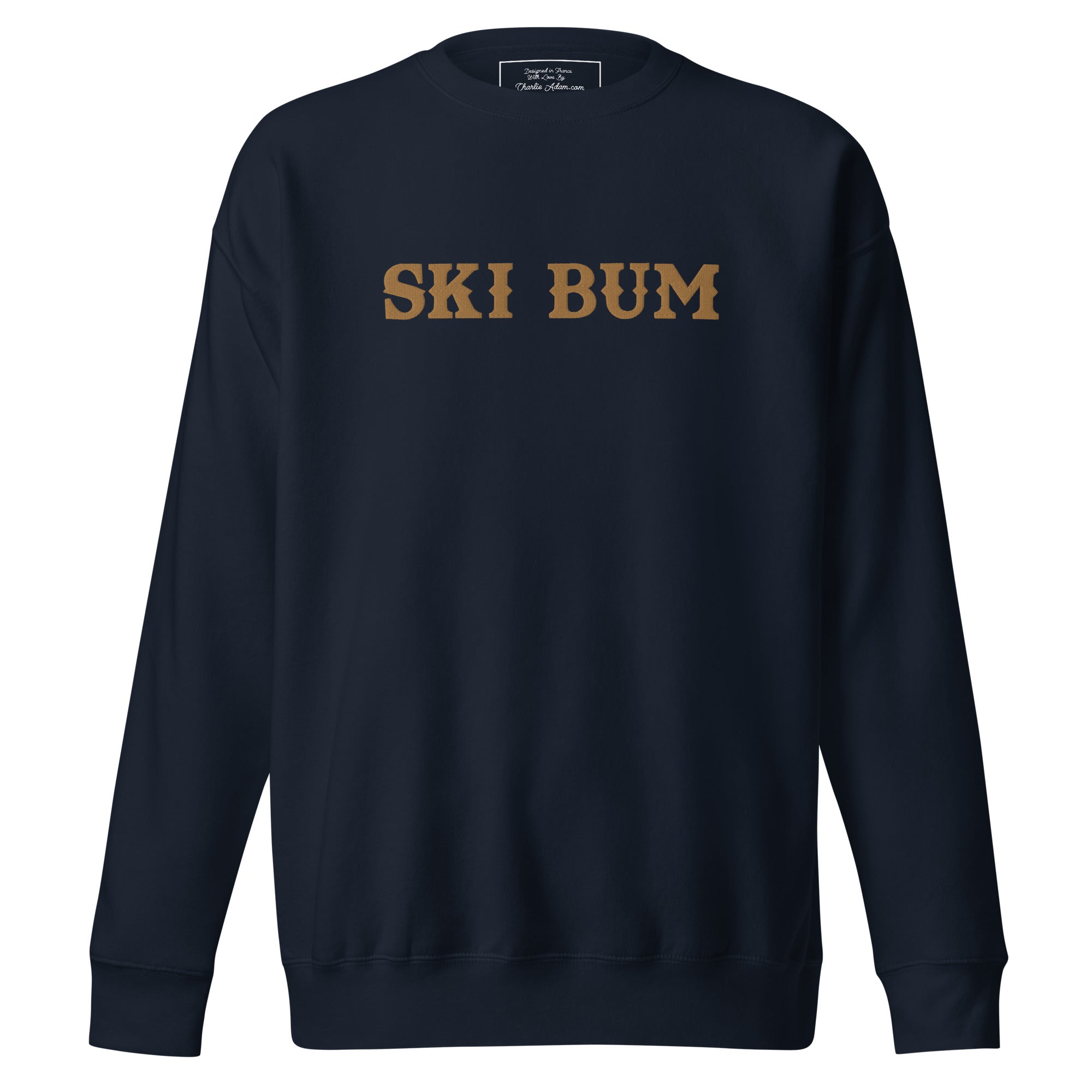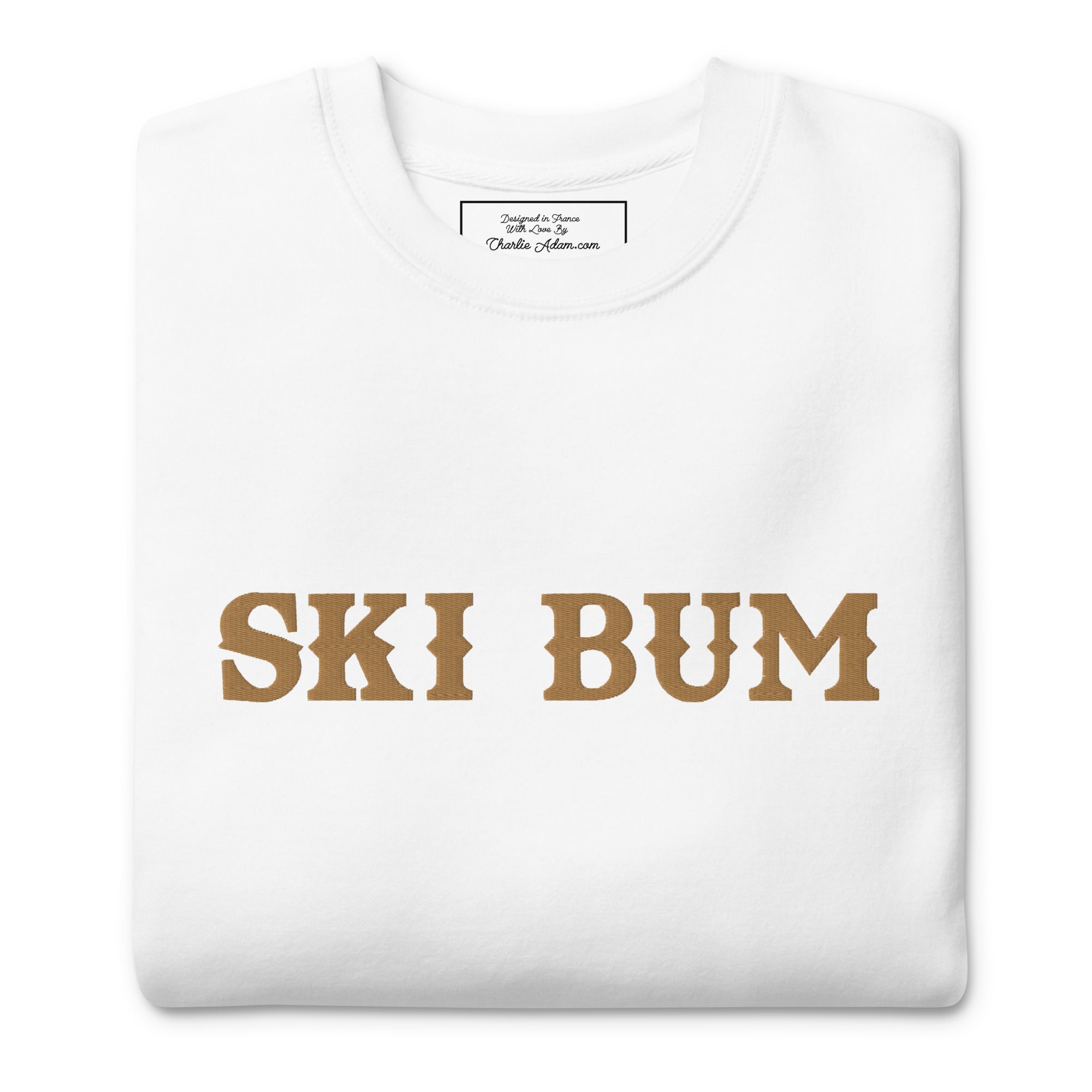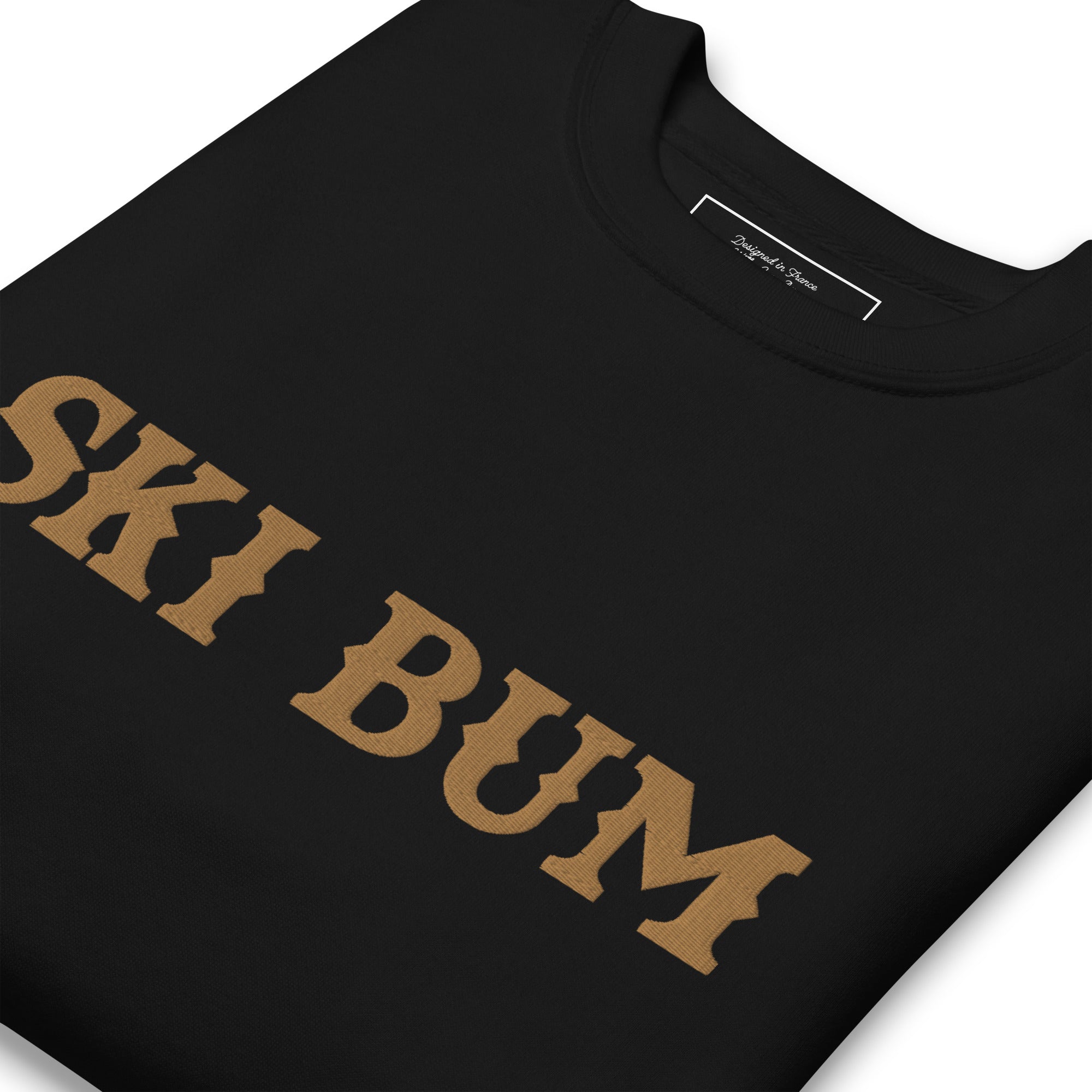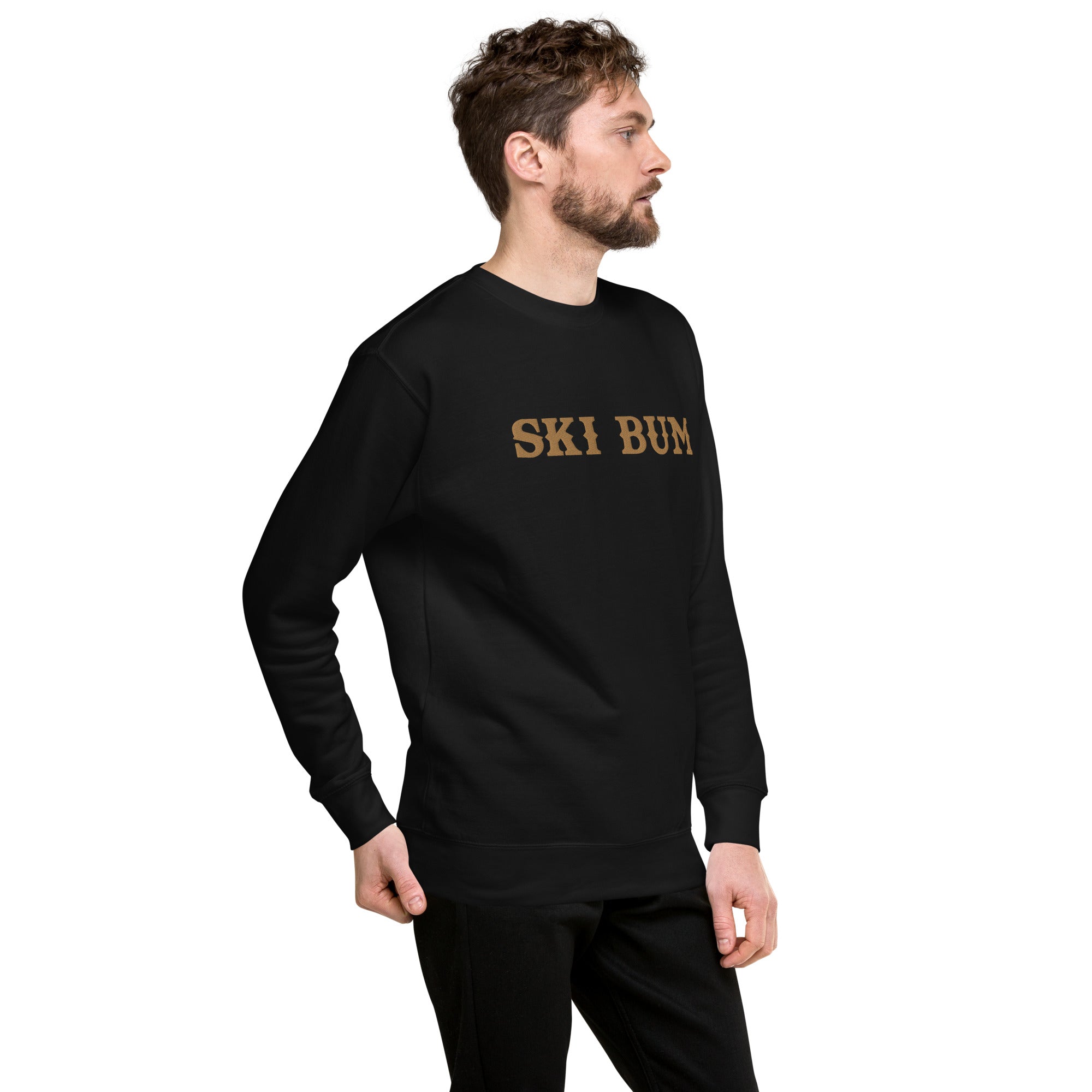 Unisex Premium Sweatshirt Ski Bum Old Gold large embroidered pattern