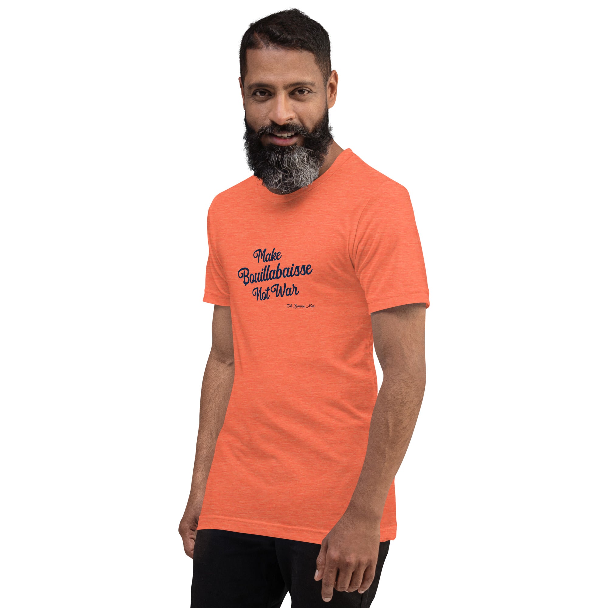 Unisex t-shirt Make Bouillabaisse Not War Text Only on bright heather colors