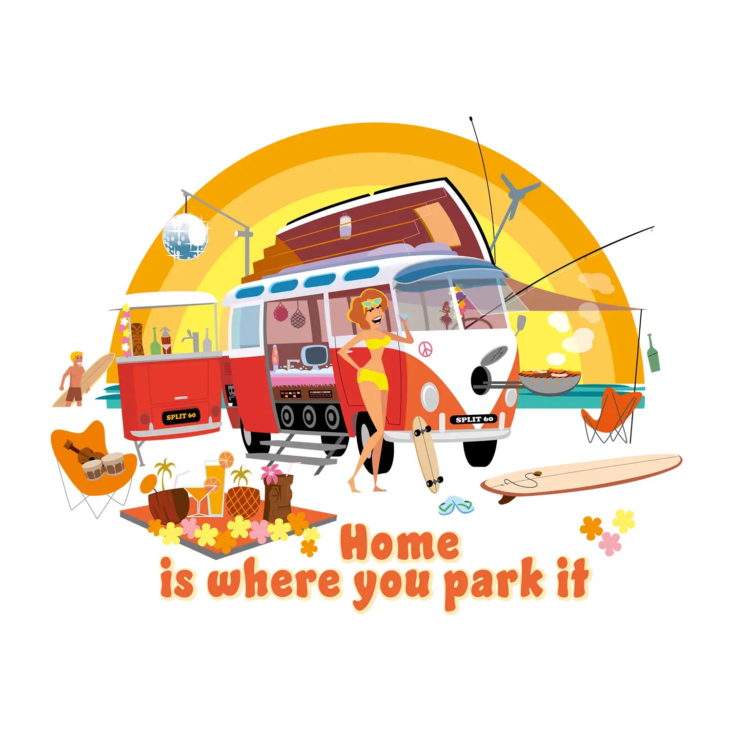 T-shirt unisexe à manches longues Blue Surf Combi Home is where you park it