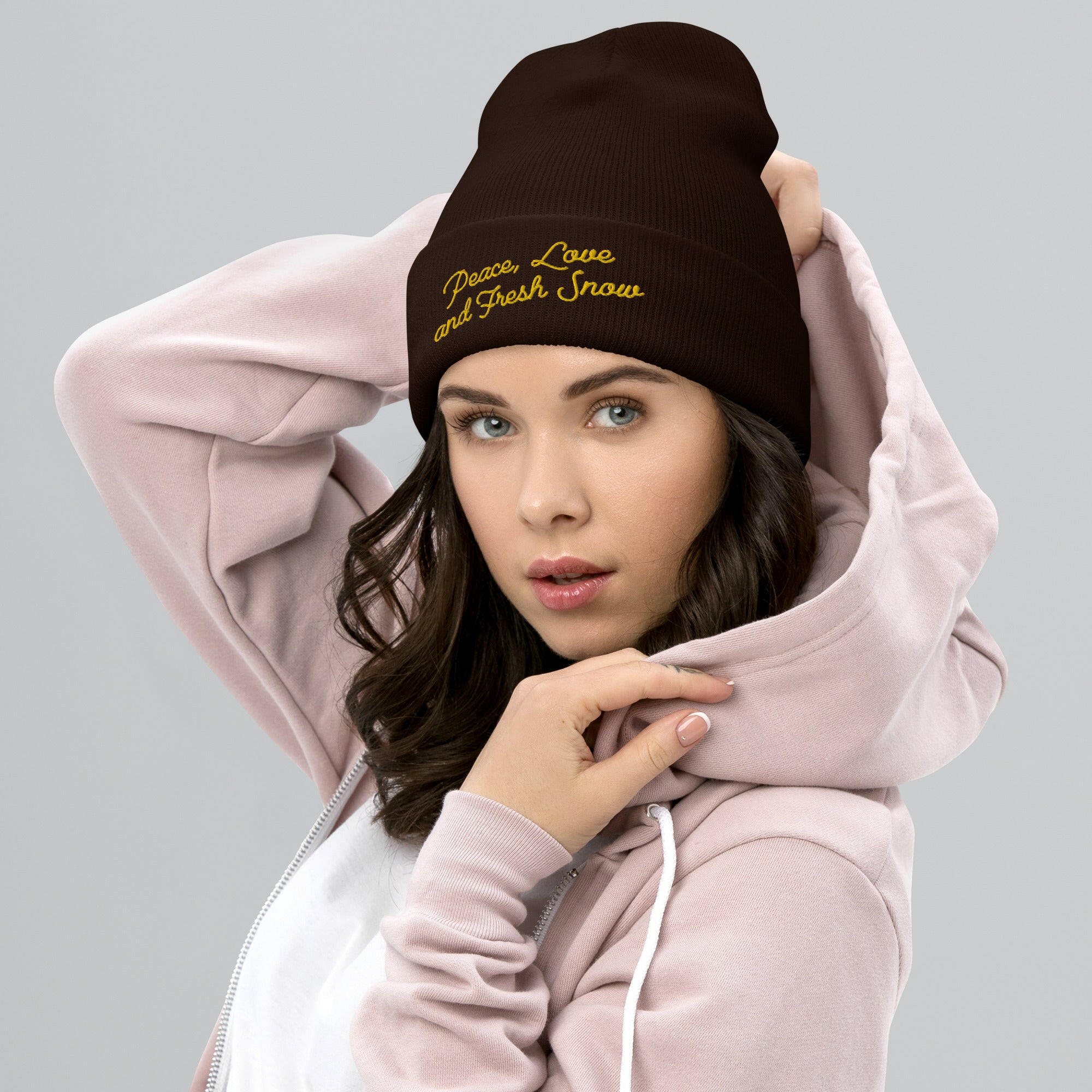 Bonnet old school à revers Peace, Love and Fresh Snow Gold