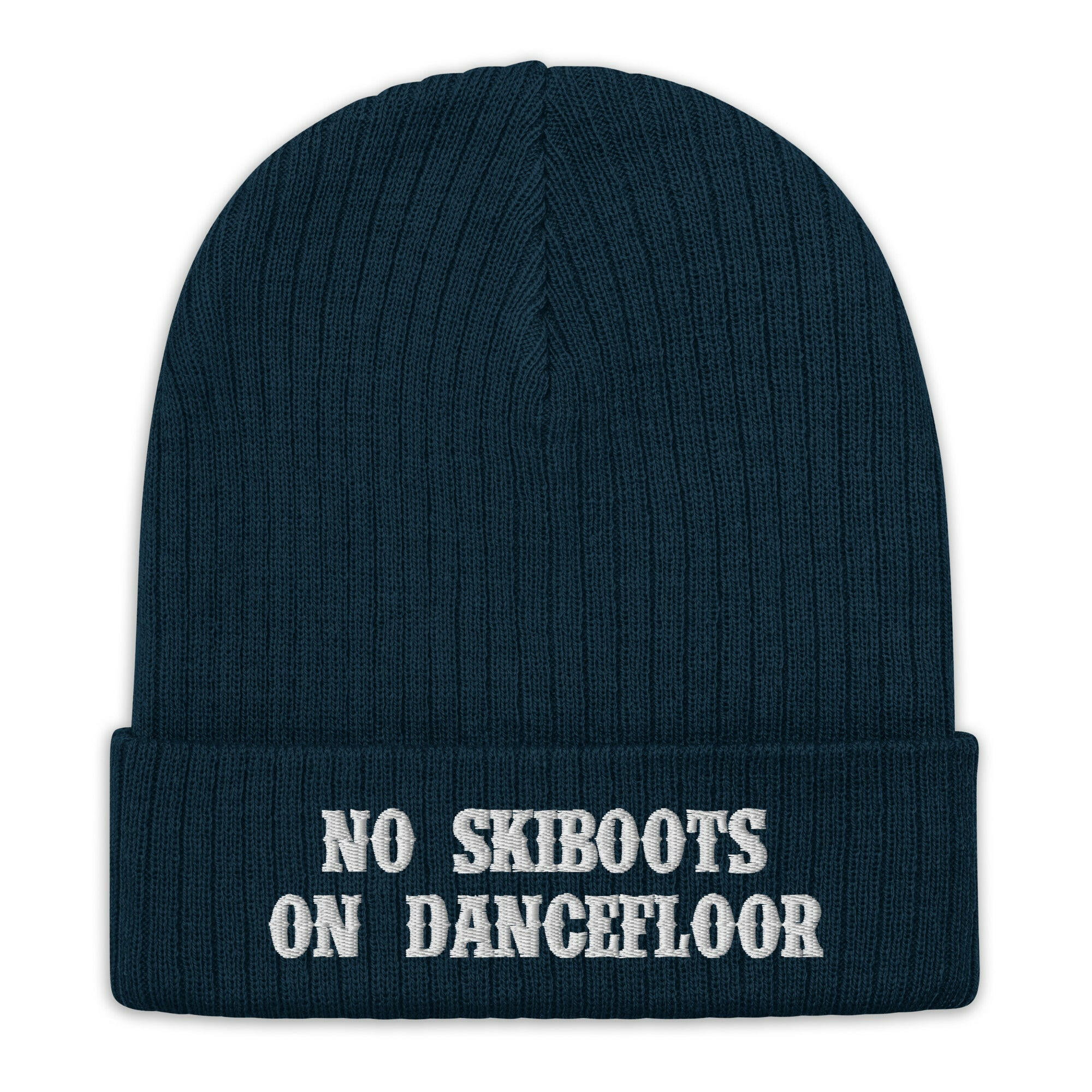 Bonnet éco-responsable en tricot côtelé No Skiboots on Dancefloor blanc