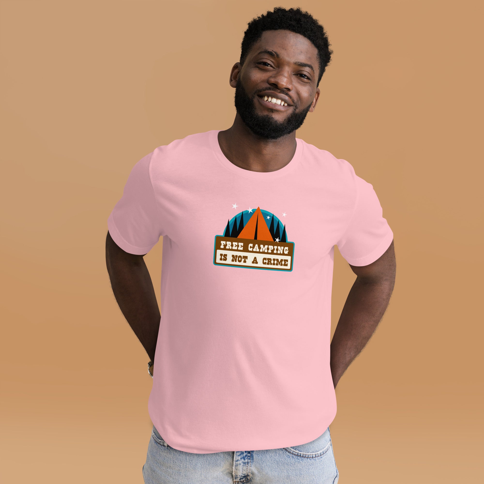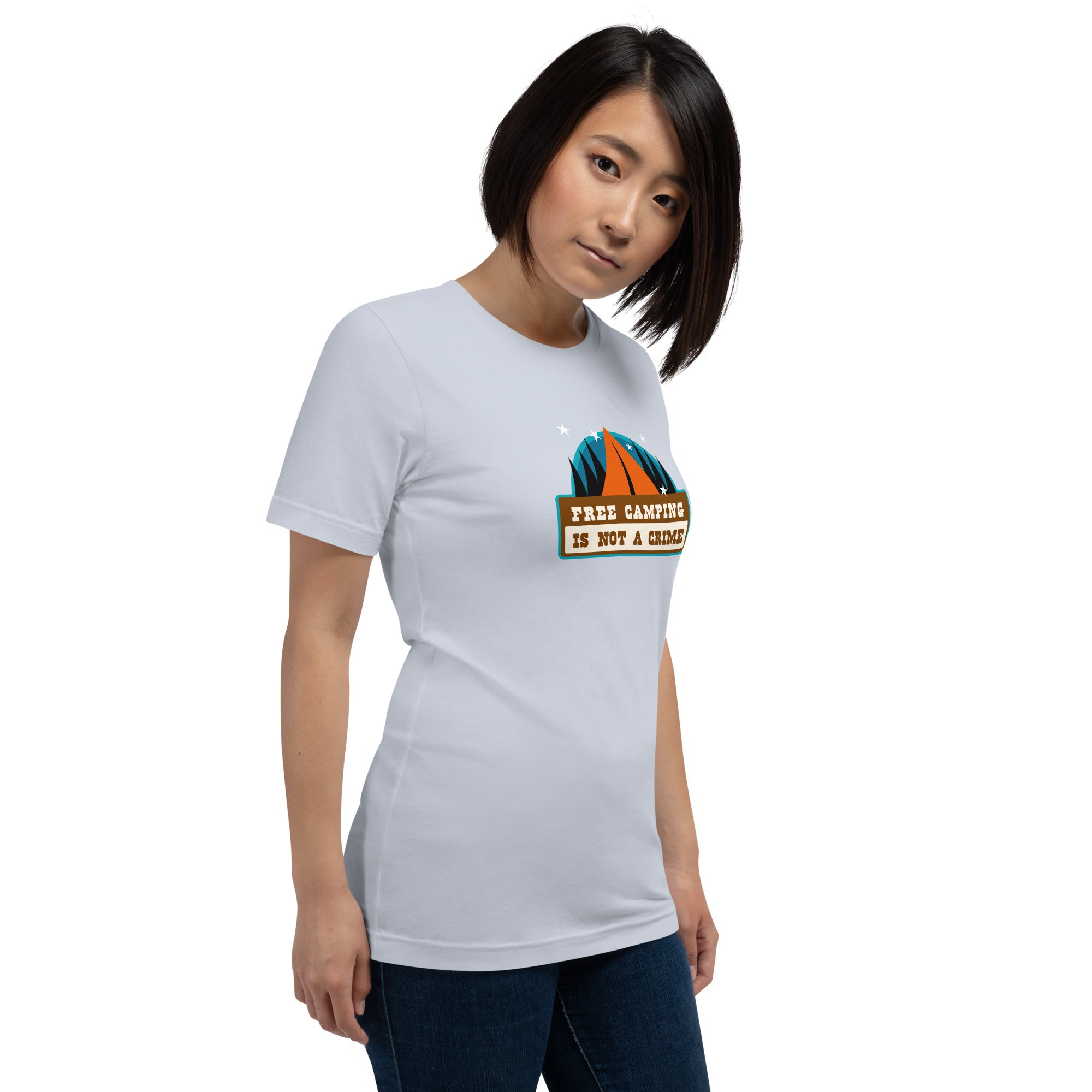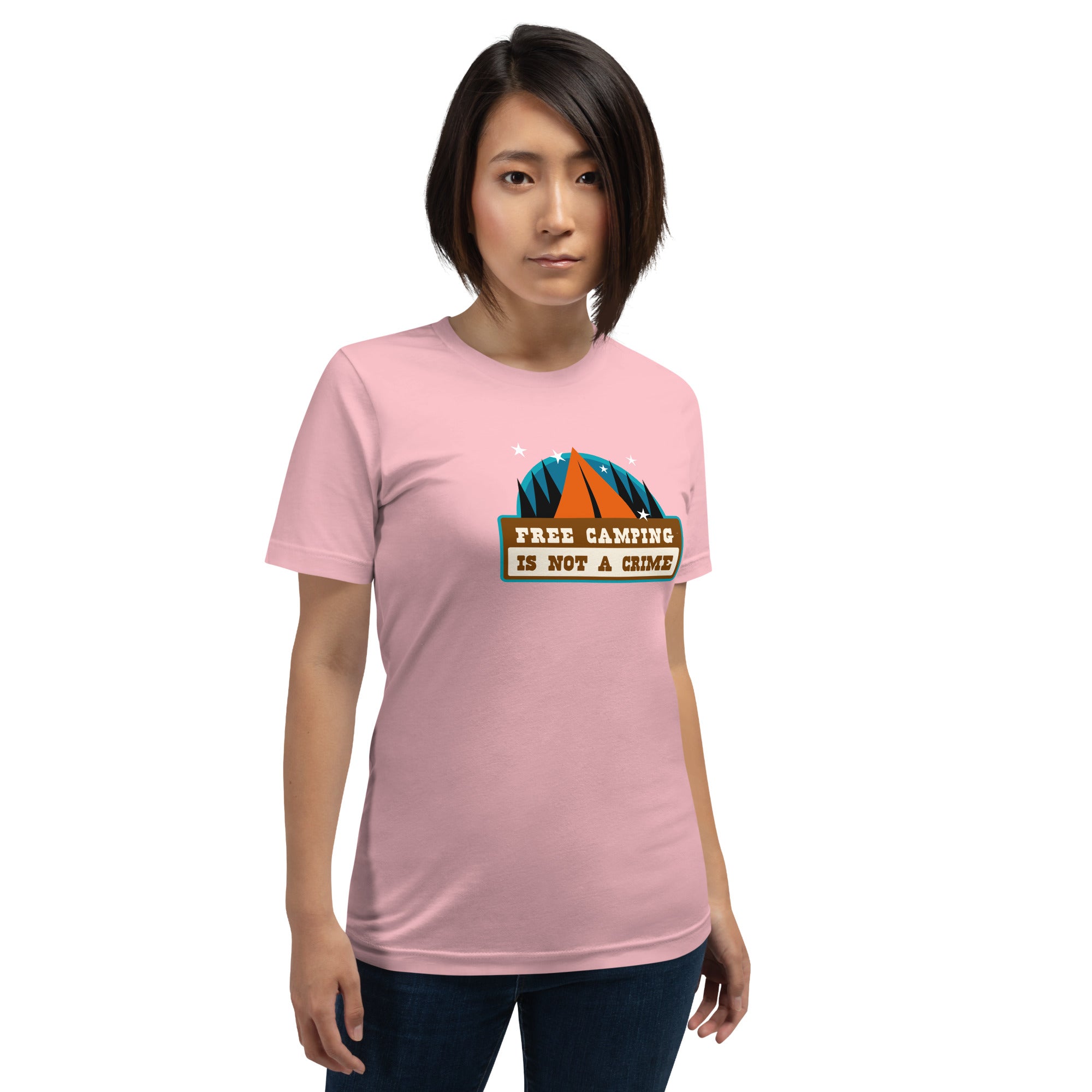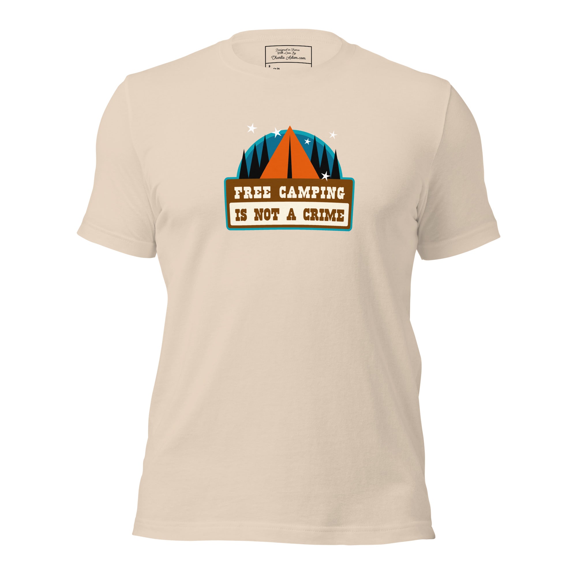 T-shirt en coton unisexe Free camping is not a crime sur couleurs claires