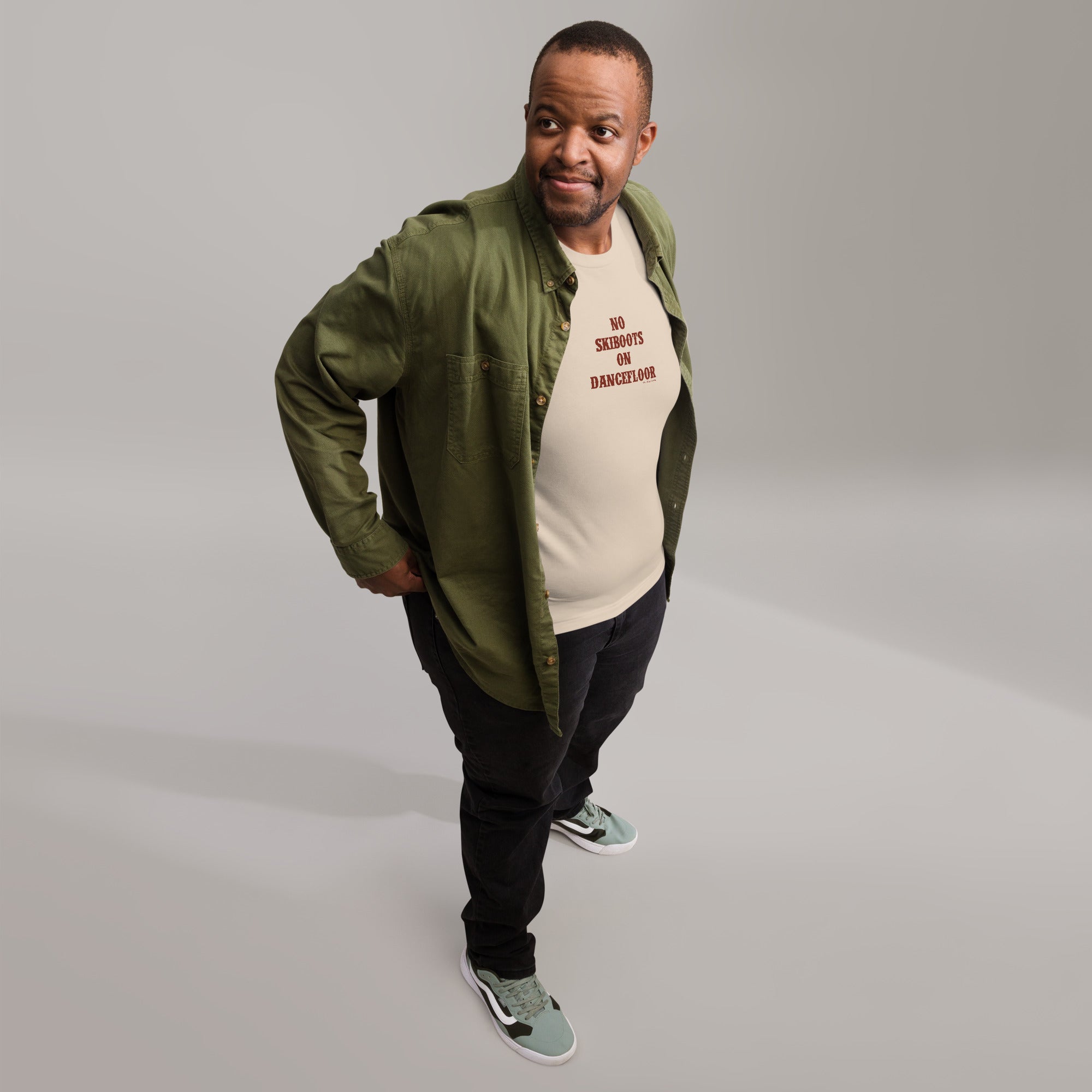 T-shirt en coton unisexe No Skiboots on Dancefloor sur couleurs claires