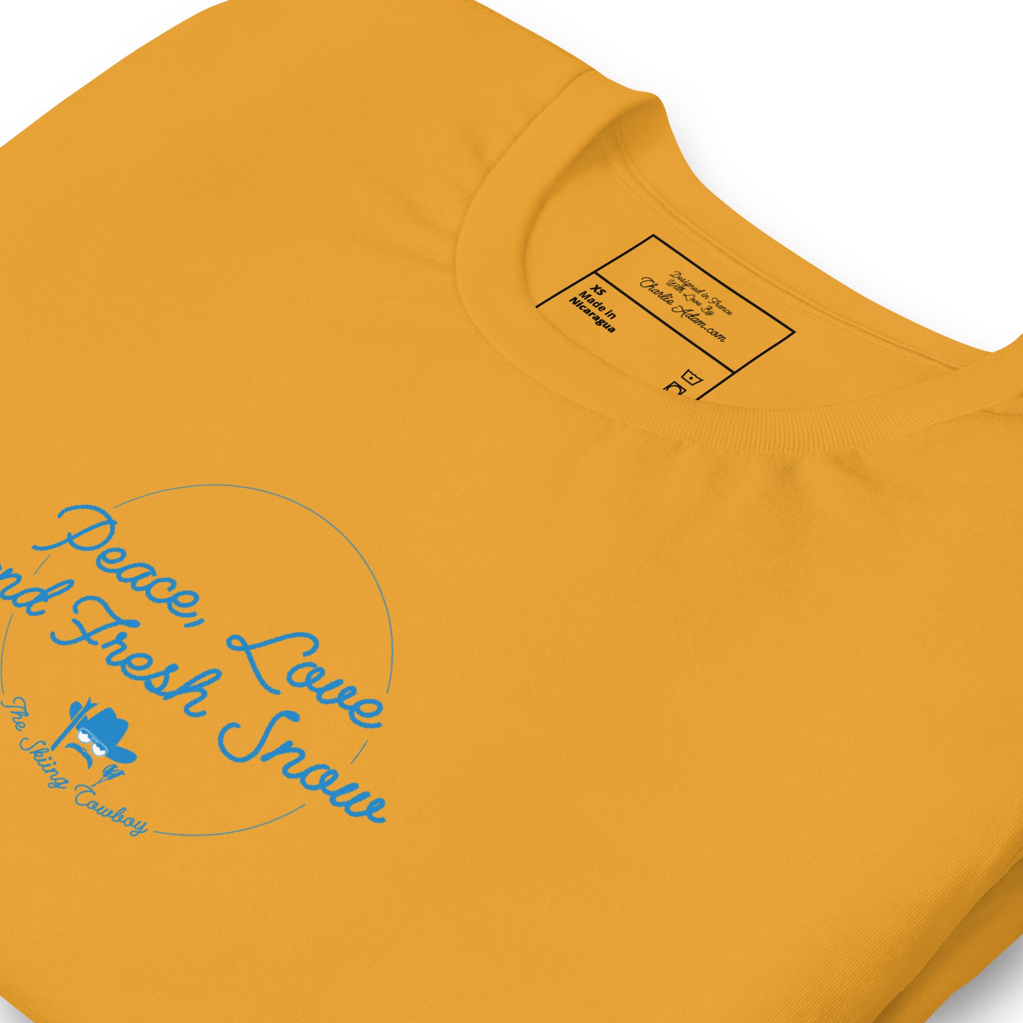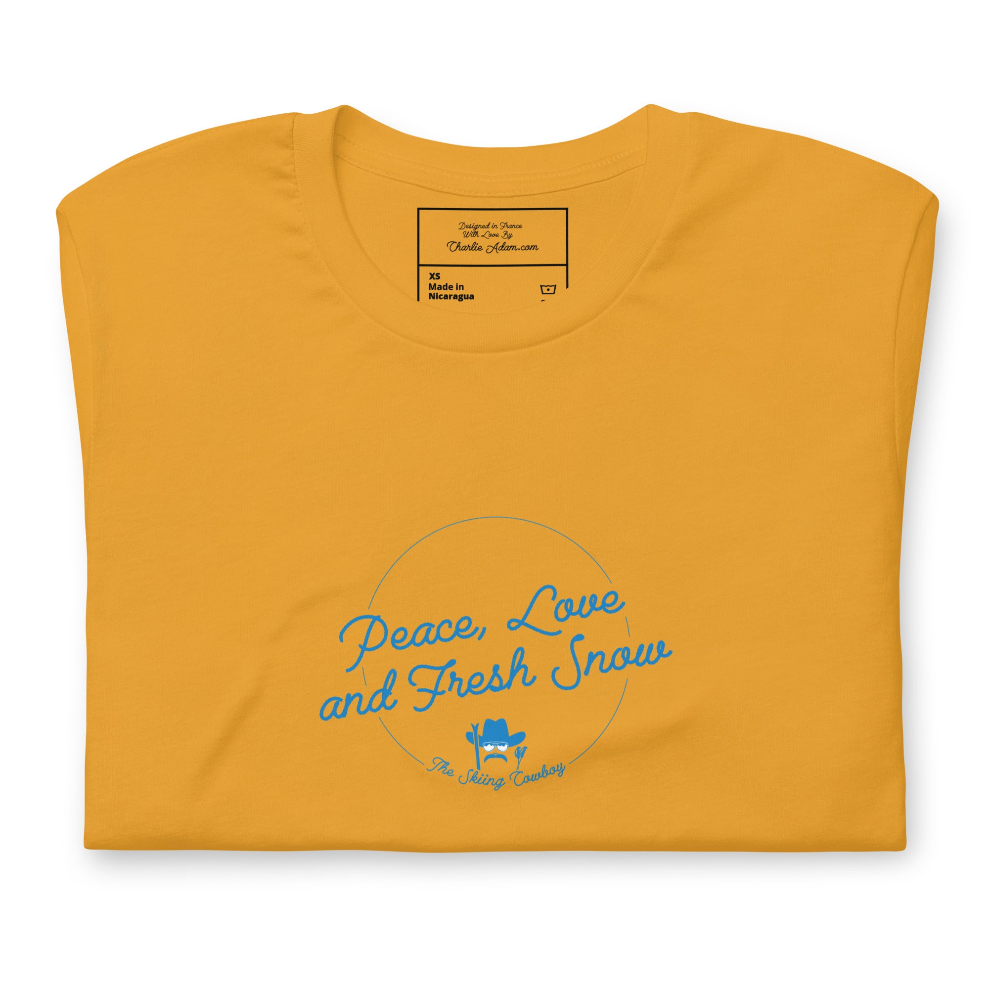T-shirt en coton unisexe Peace, Love and Fresh Snow sur couleurs vives