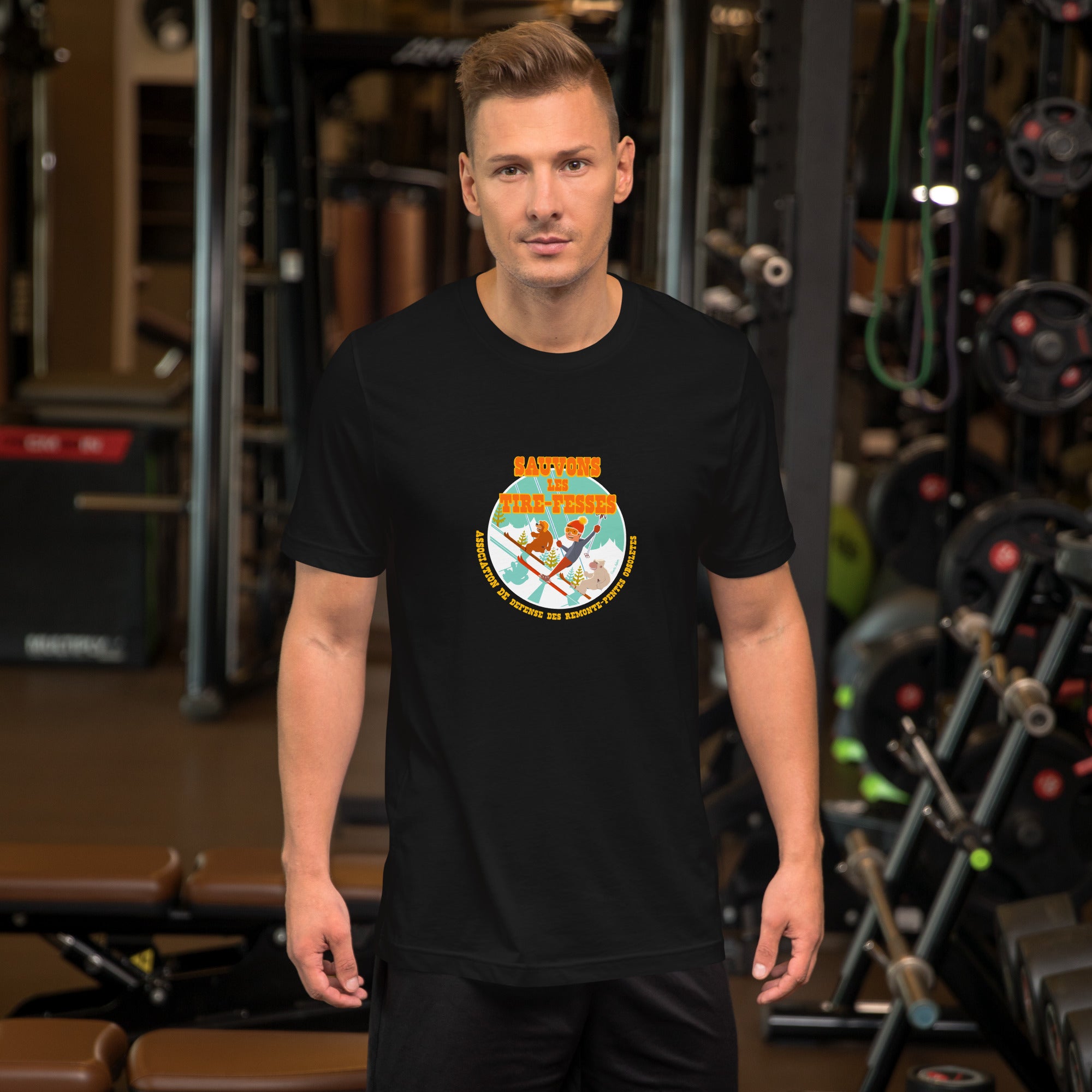 T-shirt en coton unisexe Sauvons les Tires-fesses sur couleurs foncées