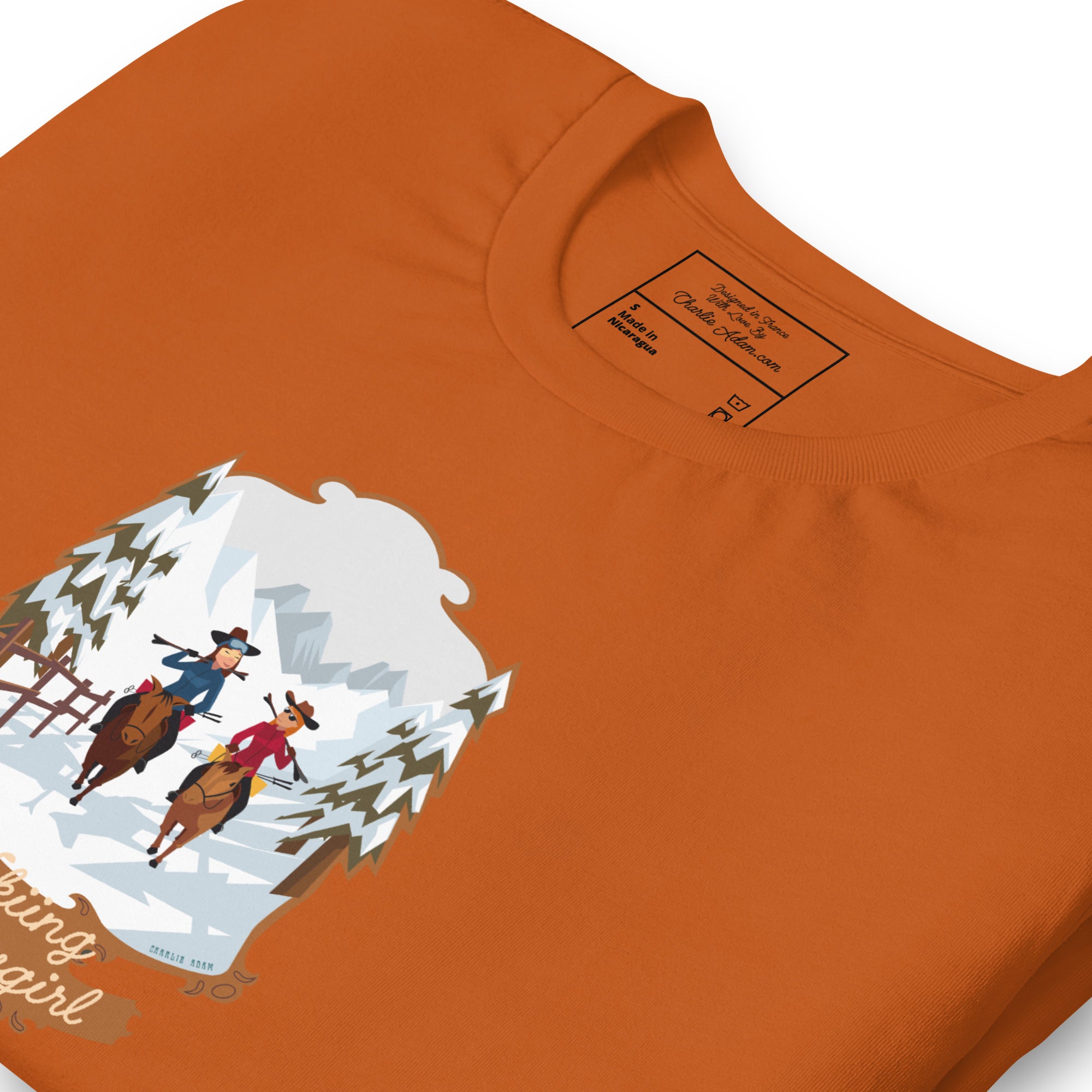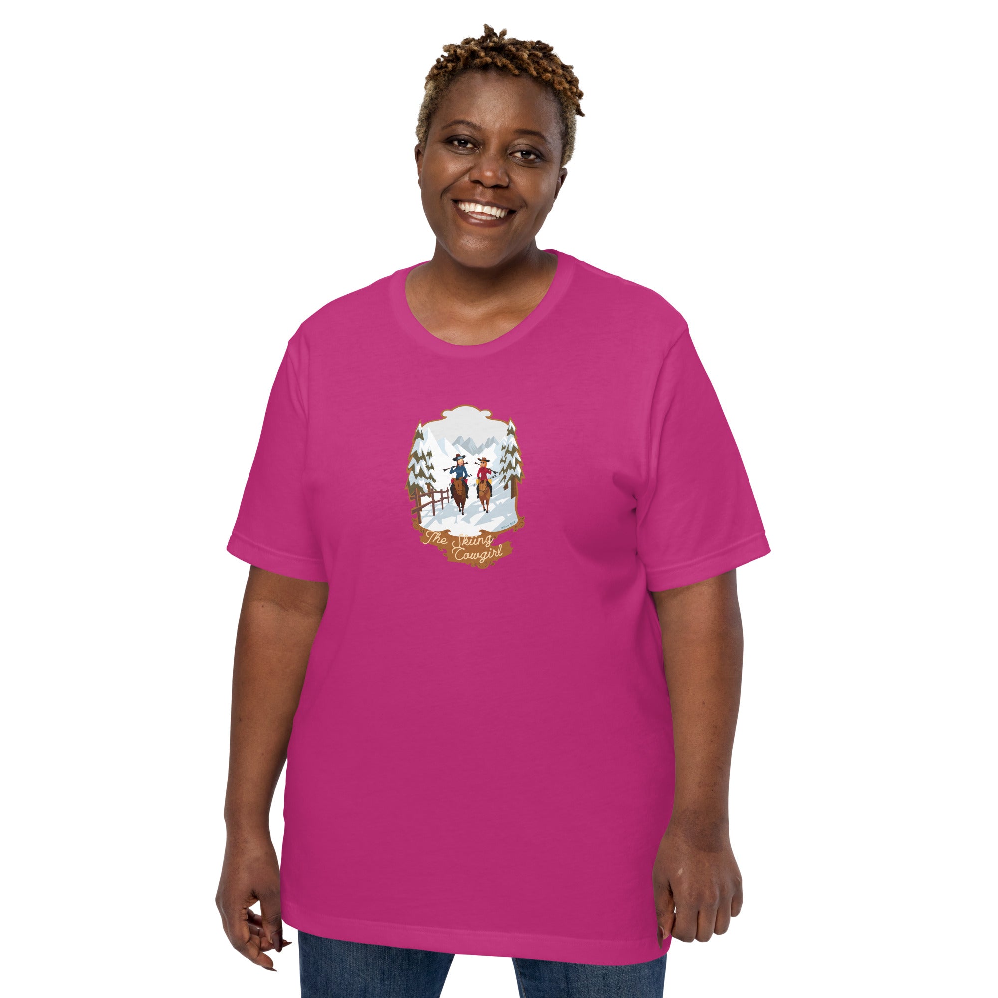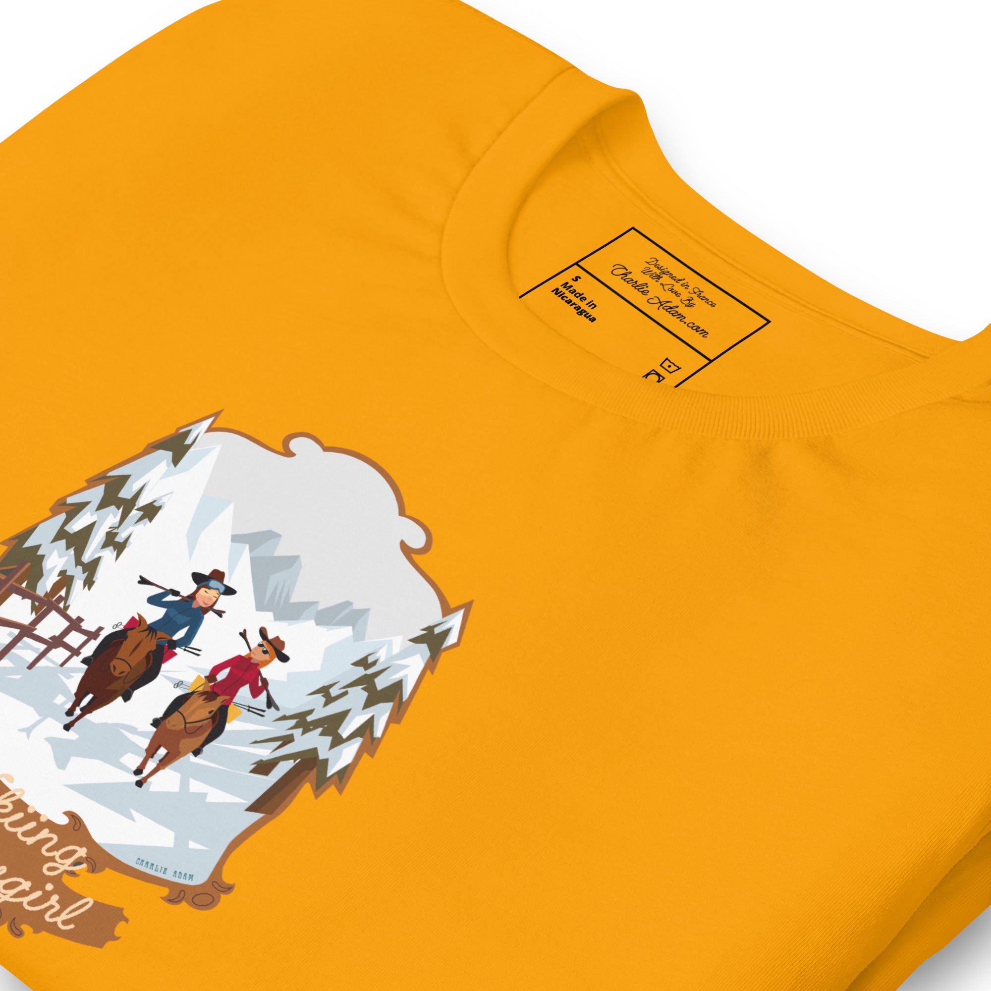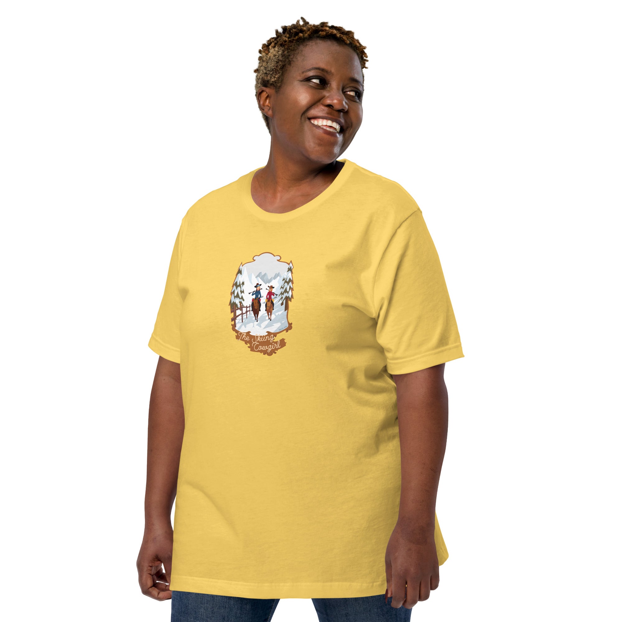 T-shirt en coton unisexe The Skiing Cowgirl sur couleurs vives