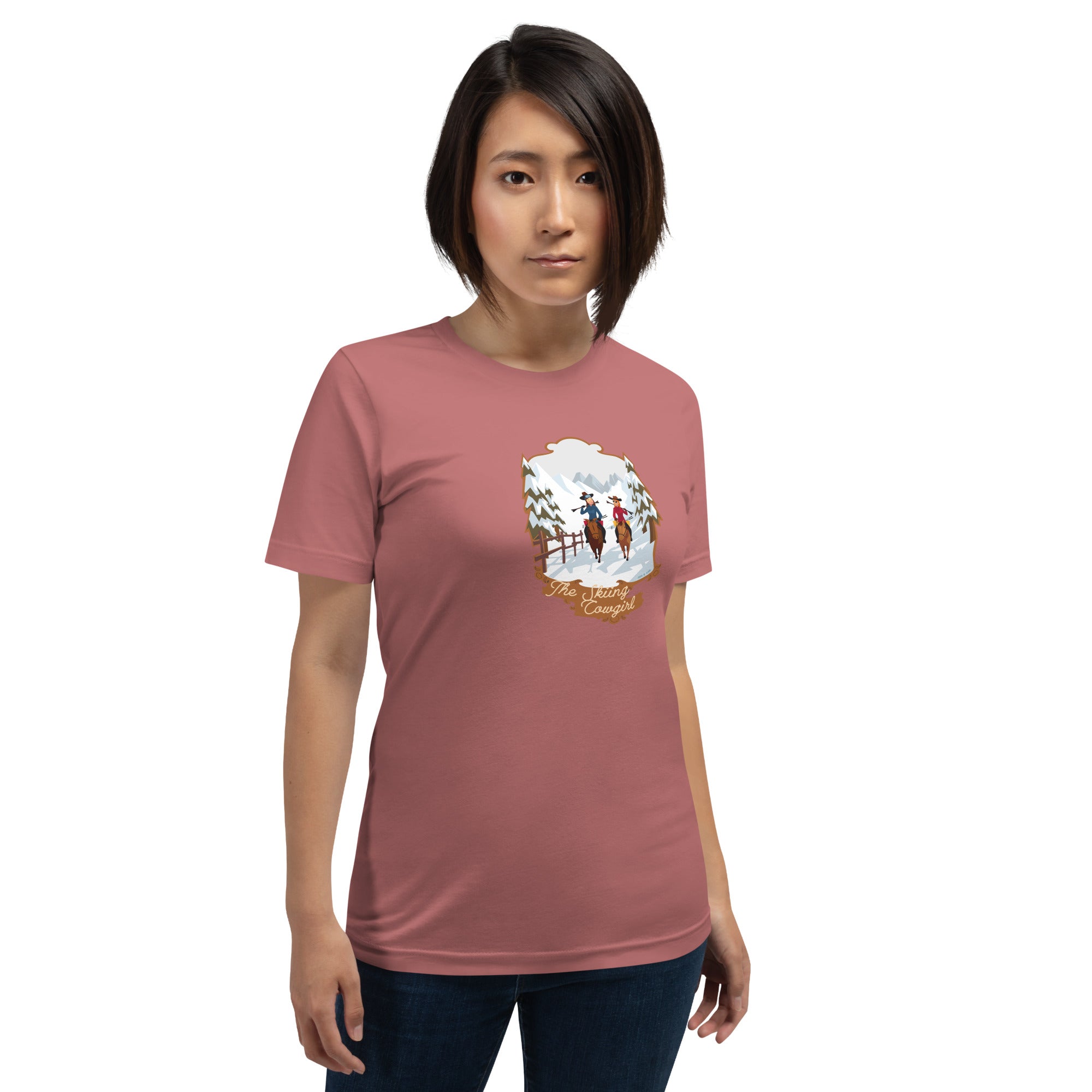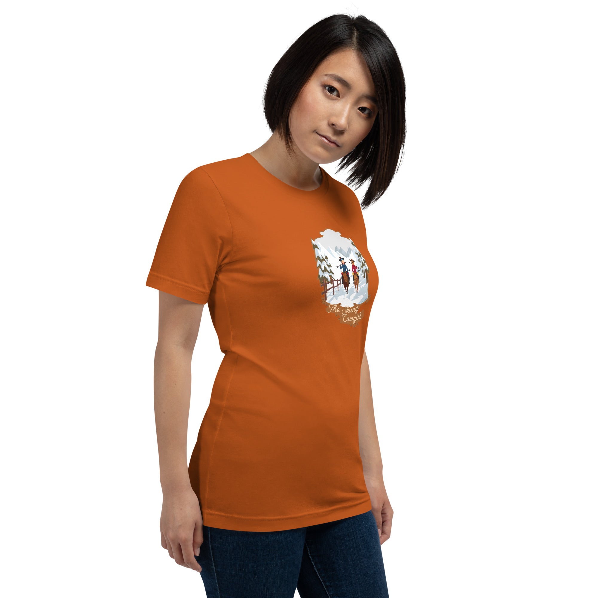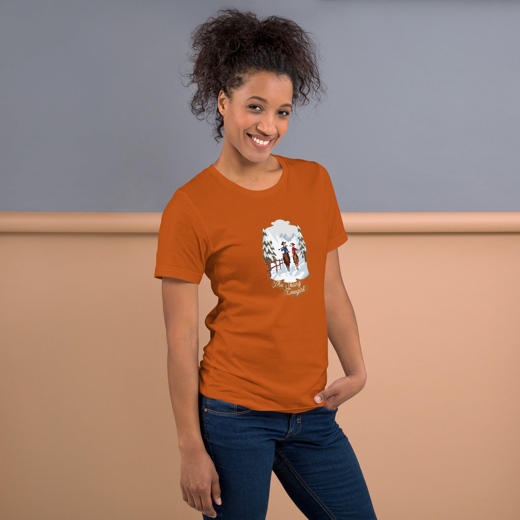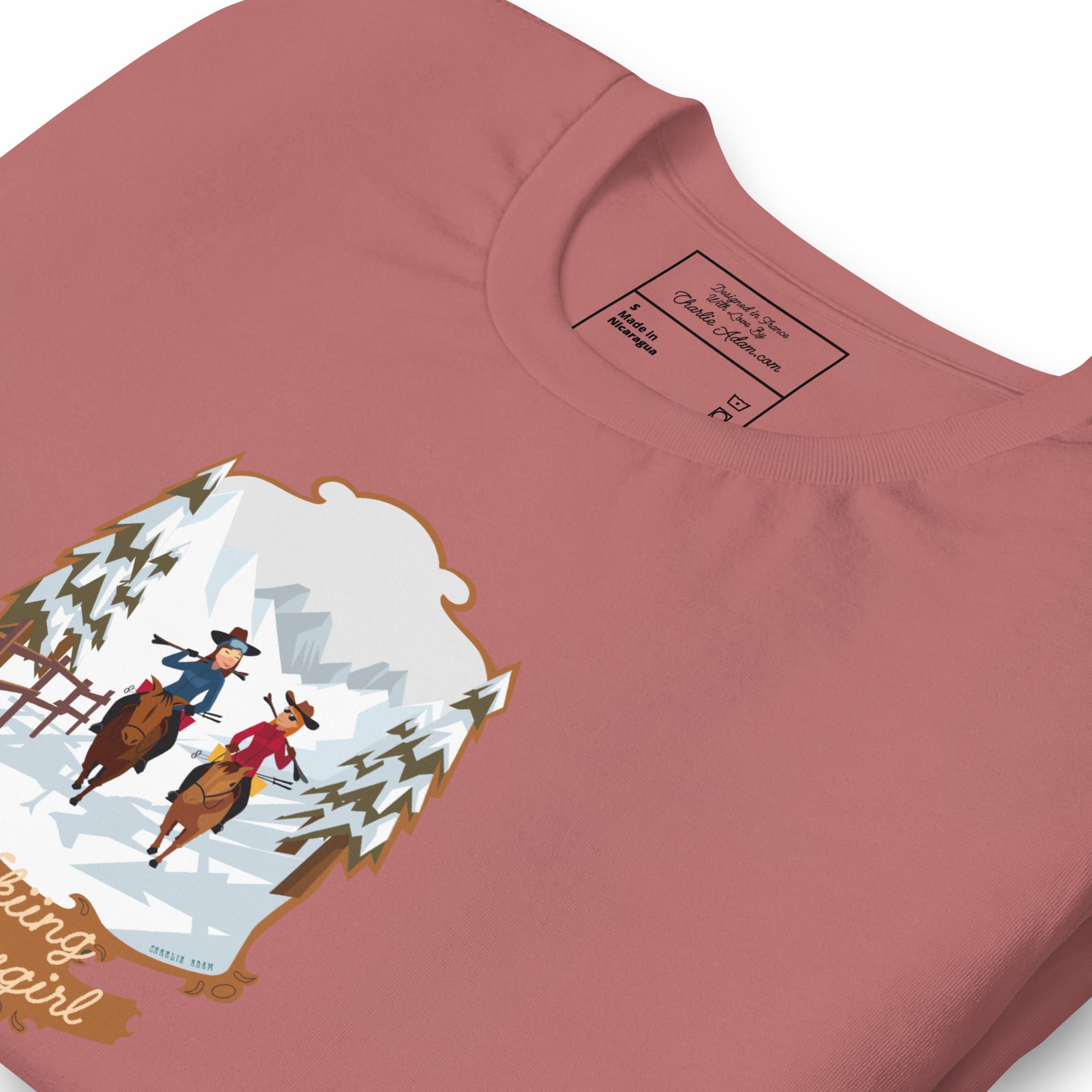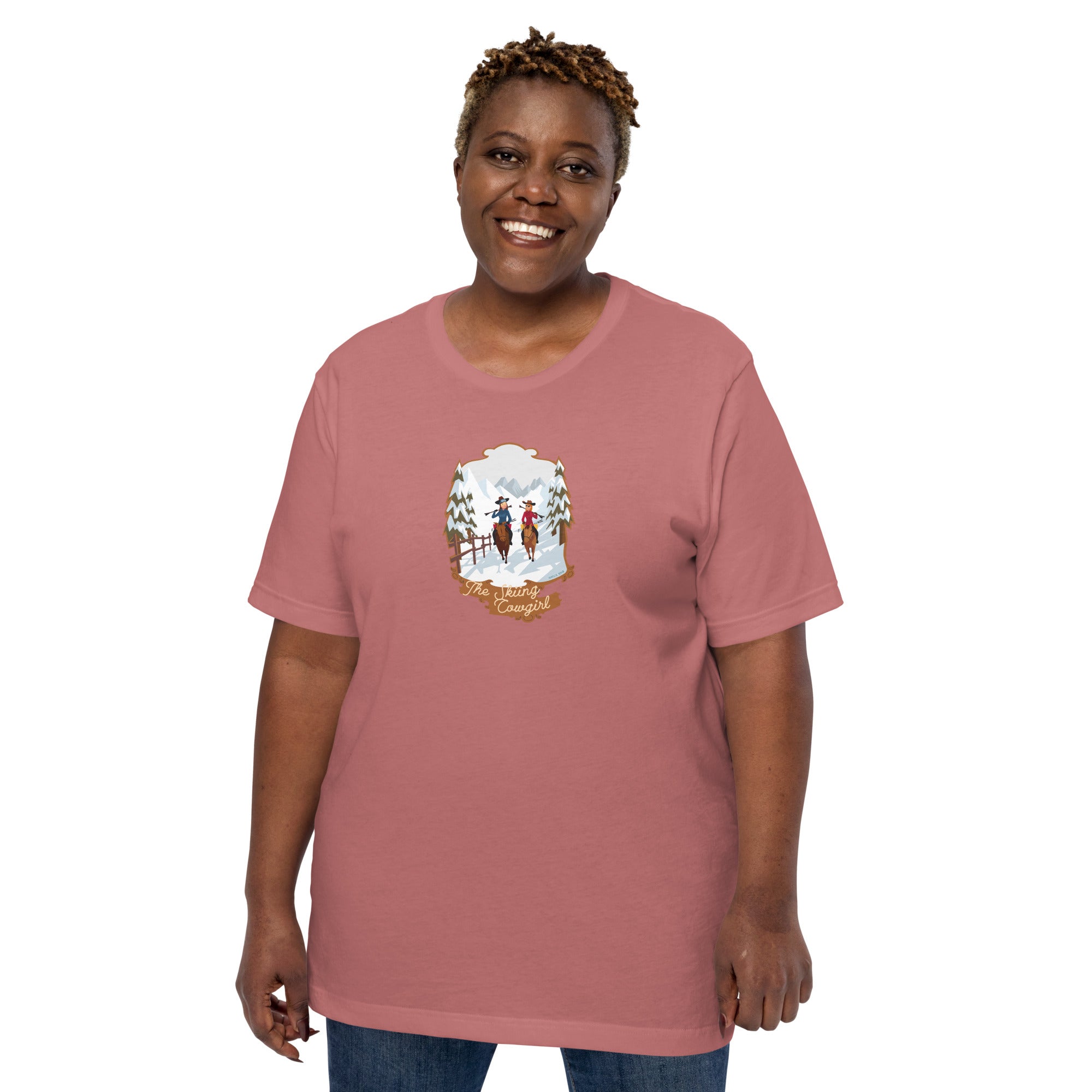 T-shirt en coton unisexe The Skiing Cowgirl sur couleurs vives